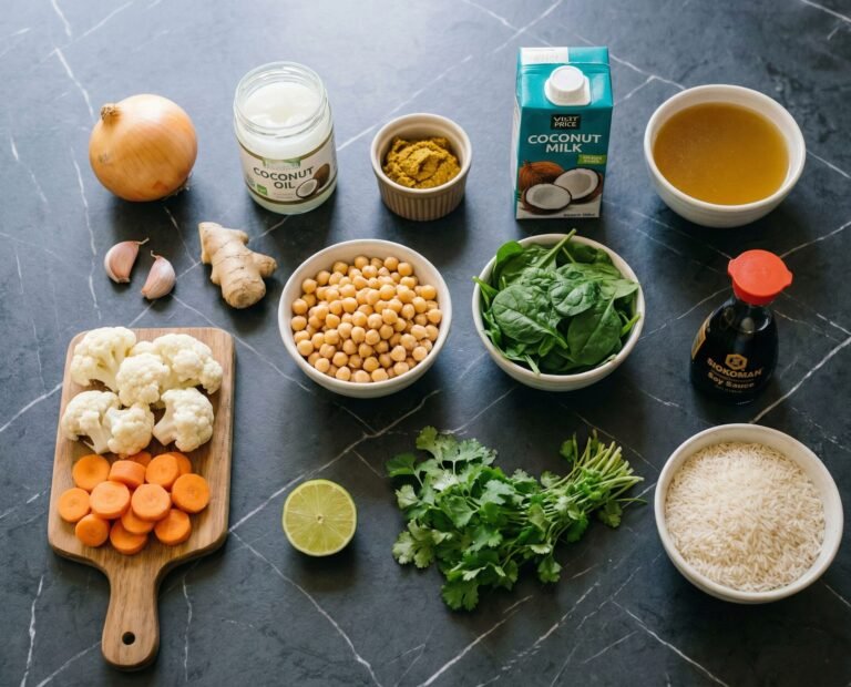 - Servir sur riz basmati avec coriandre fraîche. CASSEROLE : Hacher oignon, ail, gingembre. Faire revenir 3 min. Ajouter curry 1 min. Ajouter légumes, lait de coco, bouillon. Mijoter 12-15 min. Ajouter épinards, sauce soja, citron. Cuire 2 min.